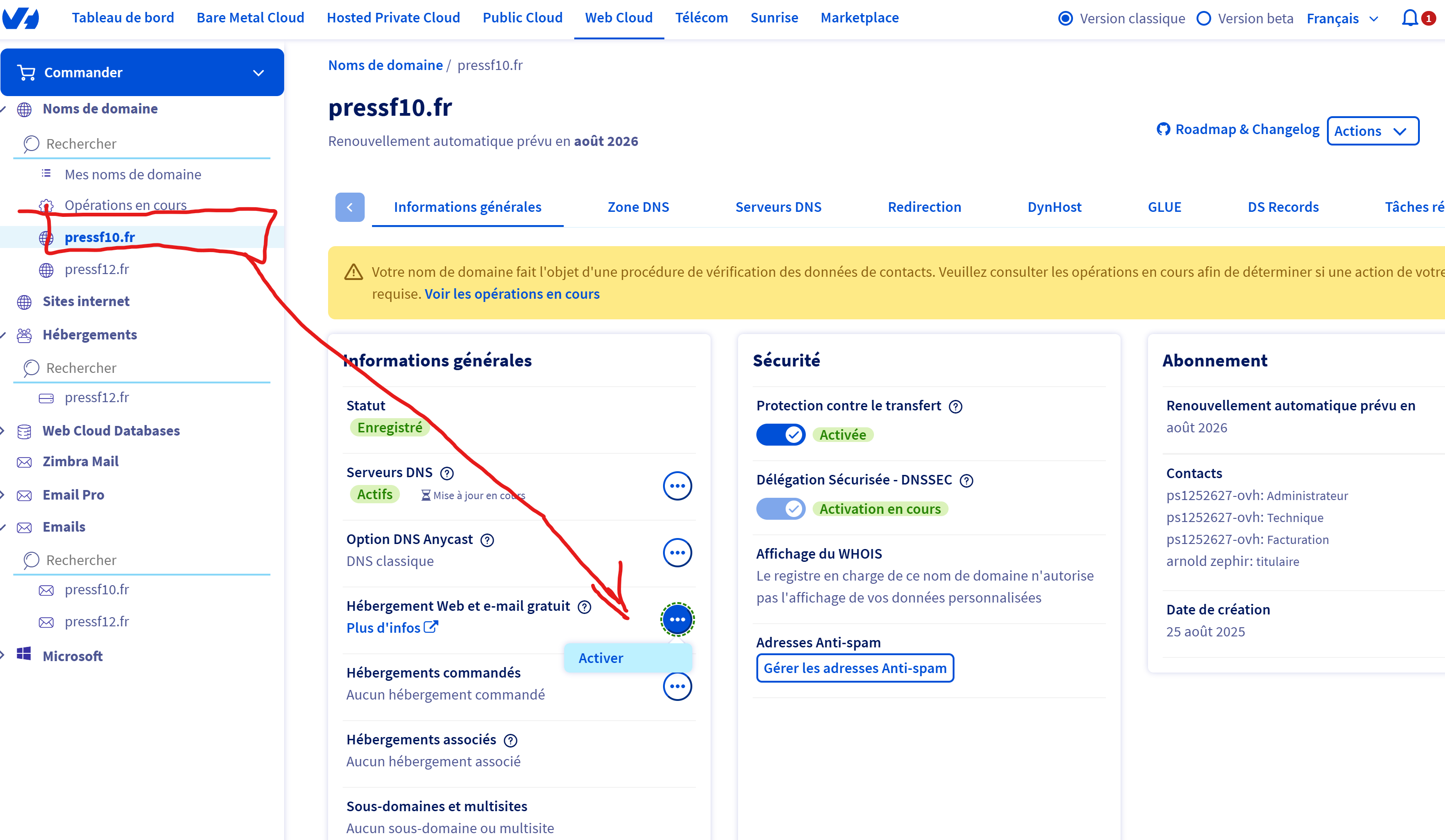 Une fois la commande terminée et payée, attendez une trentaine de minutes que tout soit activé ( et 48 heures pour que votre nom de domaine existe sur internet )