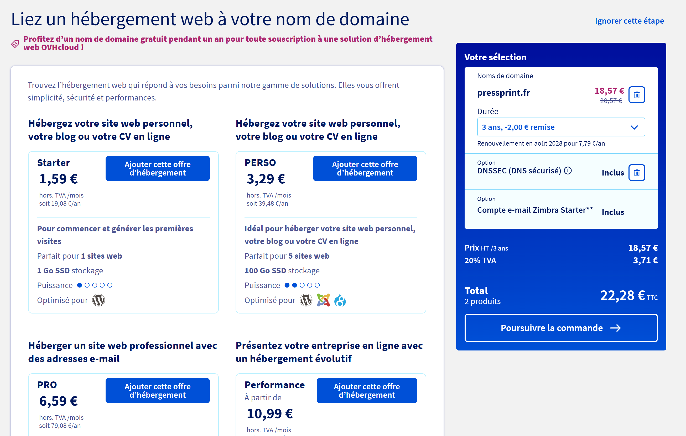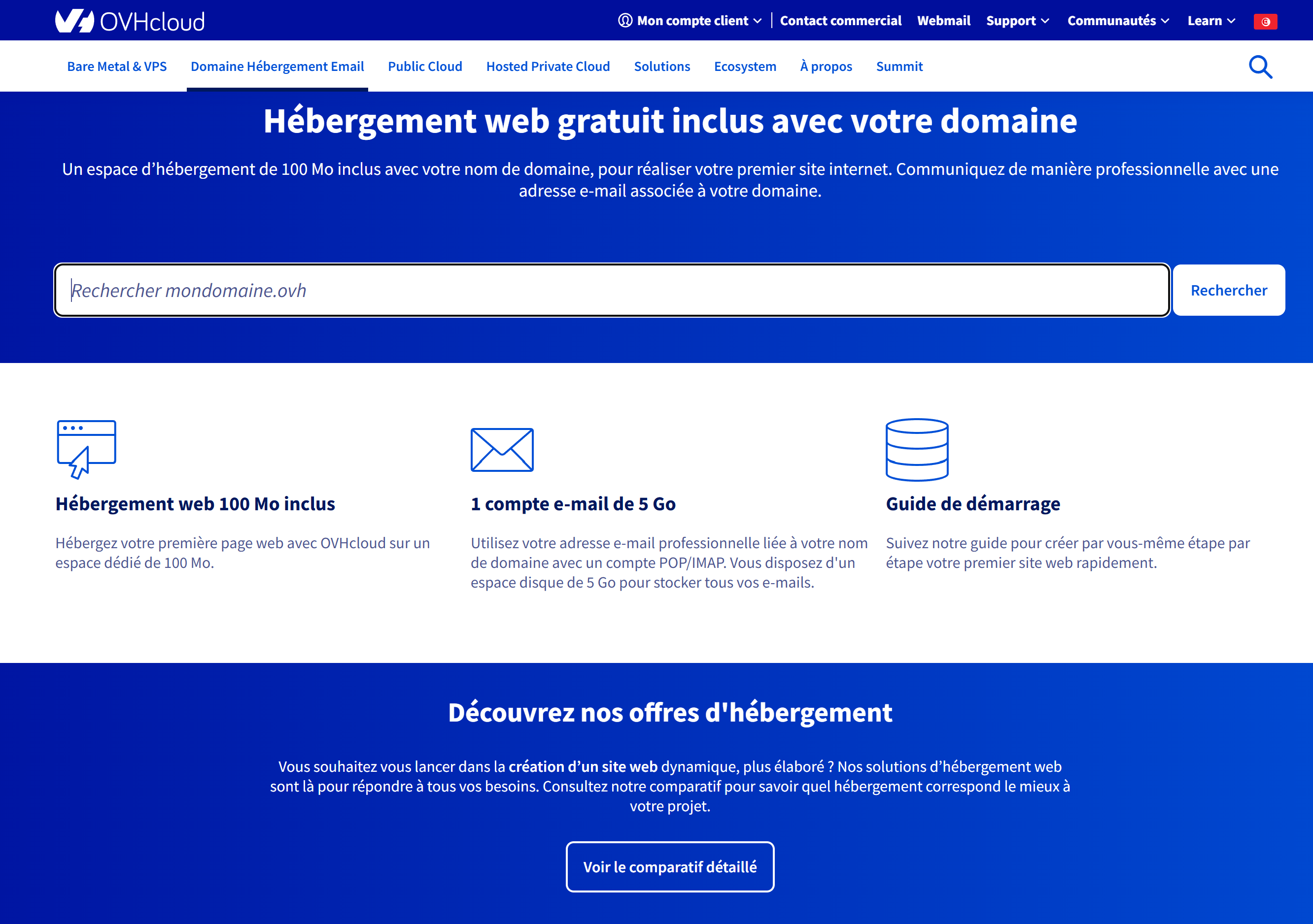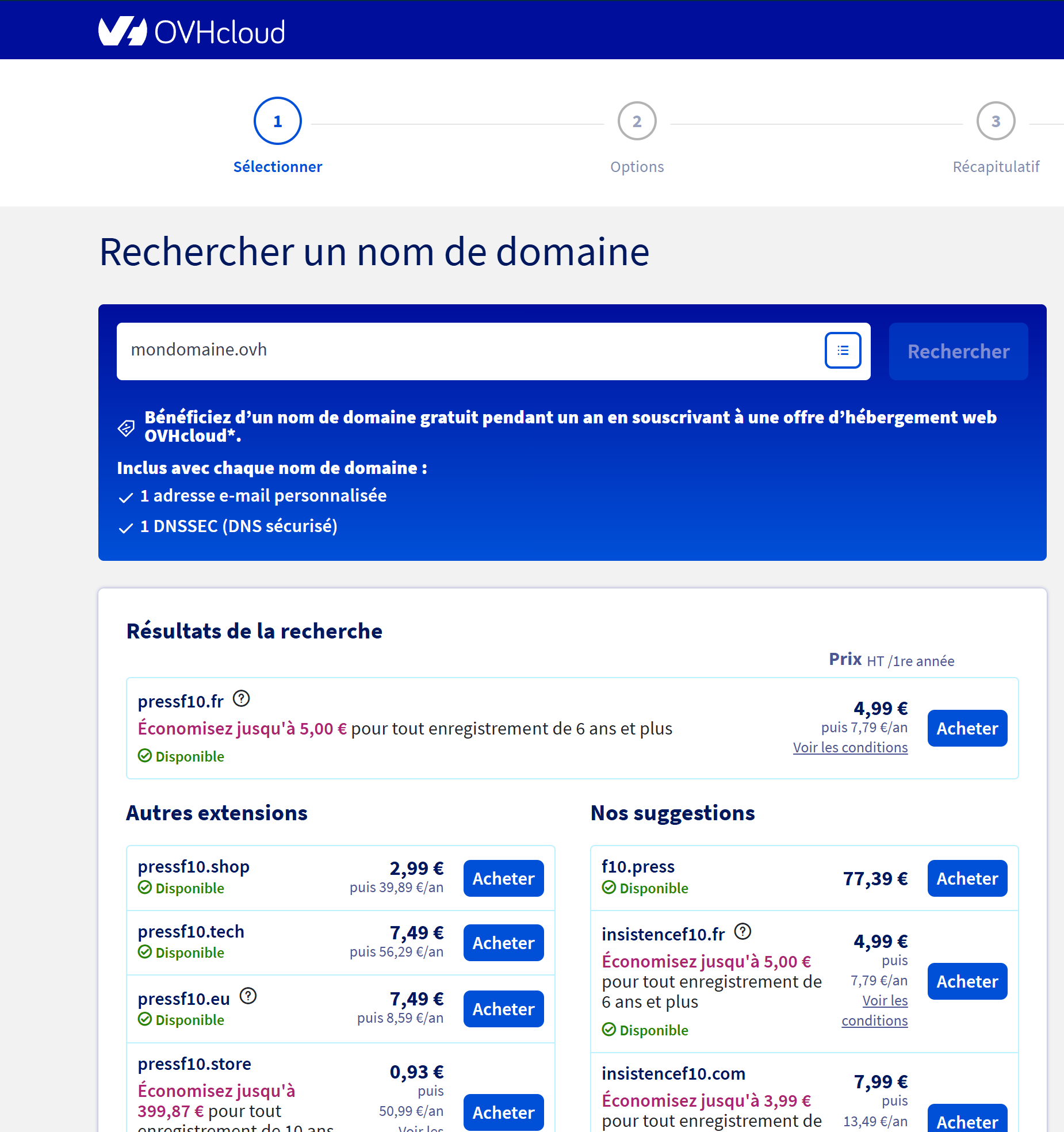web. Tapez le nom de domaine que vous souhaitez acheter pour voir s'il existe. OVH va ensuite vous montrer les